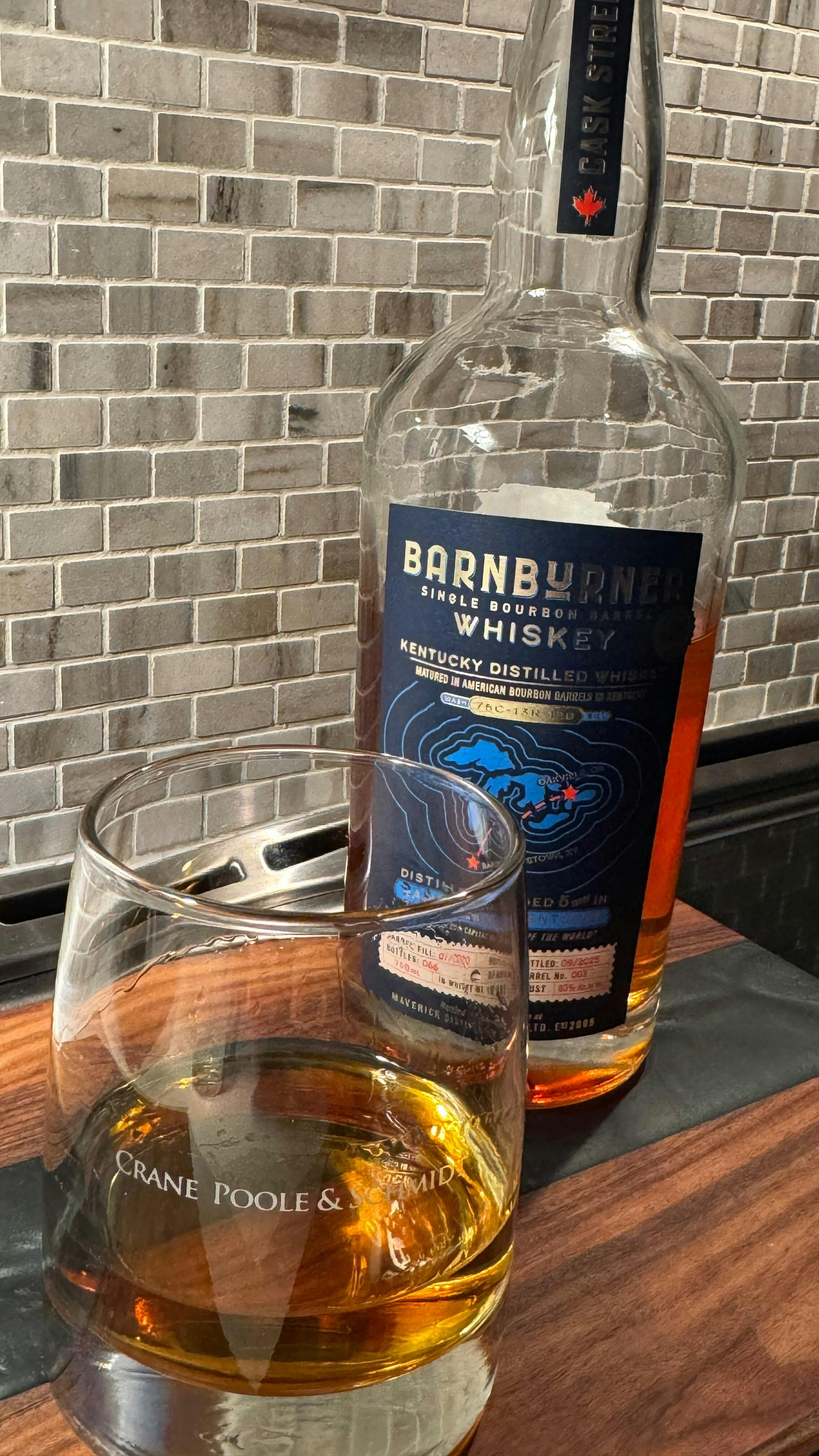BARNBURNER Cask-Strength Bourbon — the one they almost didn’t let cross the border. Aged 5 years in Bardstown, bottled at a full-throttle 60% ABV, this is bourbon in its natural, untamed state. Each bottle is hand-numbered and traced back to the barrel it escaped from.